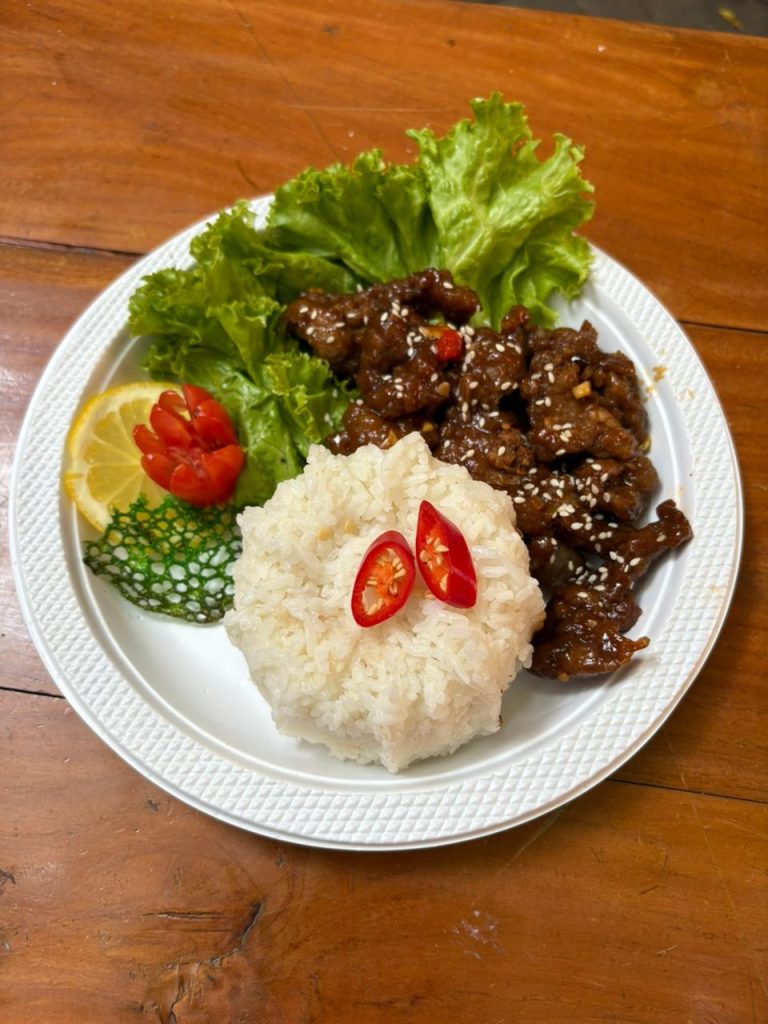 Kami membagi tugas secara jelas; ada yang memotong daging, membuat saus dan marinasi bumbu, hingga mengatur plating, untuk plating, disini kami dibantu oleh ai kantin di kantin terang, kami juga membeli nasi disana, dengan bantuan ai kantin, sajian masakan kami pun terlihat lebih cantik dan menggugah selera, saat menumis daging untuk beijing beef, kami juga bergantian dan membagi bagian untuk siapa yang menumis dagingnya, siapa yang memasukkan bumbunya, dan siapa yang menyiapkan bahan bahan dasar.