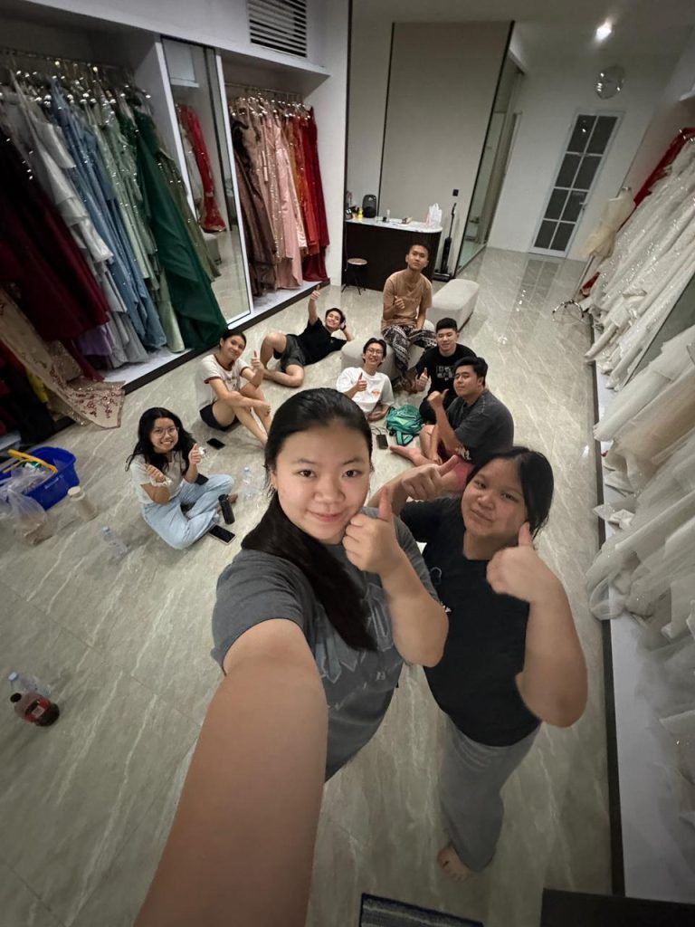 Saya juga terlibat dalam proses pembuatan properti, seperti membuat bendera dan perlengkapan pendukung lainnya. Kegiatan ini membutuhkan ketelitian, terutama dalam memotong, menempel, dan menyusun bahan agar hasilnya rapi dan sesuai dengan konsep pagelaran.