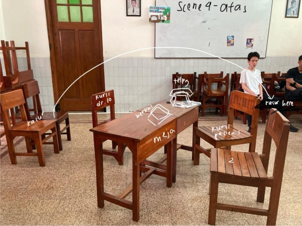 Pada tahap awal, saya mengatur meja dan kursi di dalam ruangan agar dapat digunakan untuk kegiatan UPRAK. Meja dan kursi diangkat lalu dipindahkan ke sisi ruangan supaya area tengah menjadi lebih luas dan leluasa digunakan